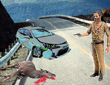 Kaarnapolulta kolmiontakaa tuli auto vauhdilla eteeni.